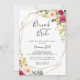 Dieser geometrisch-blumengeschmückte Brunch mit Brautdusche lädt zum Polterabend ein. Das Design besteht aus handbemalten, illustrierten, schönen rosa, rot-gelben Pfannkuchen mit grünem Blattwerk, die einen geometrischen Rahmen in Gold schmücken.