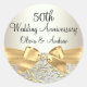 50. Hochzeitsticker zum Jubiläum. Elegantes goldenes Diamantenbogen und florales Swirl Design. Bitte beachten: Alle flachen Bilder! Sie haben keine echten Juwelen!