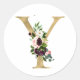 Goldener Buchstabe MONOGRAMM boho burgundy Blume C Runder Aufkleber
