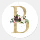 Goldener Buchstabe MONOGRAMM boho burgundy Blume Runder Aufkleber