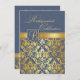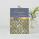 Reiches goldenes Damastmuster auf einer Hintergrund des blauen Graus mit Monogramm Ruhestands-Party Einladung. Einfach besonders anzufertigen - justieren Sie einfach Text entsprechend Ihren Anforderungen. Sie können Schriftart, Farbe ändern, sortieren auch. Merken Sie bitte: Band ist ein Druckbild.