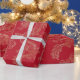Ein schönes Muster chinesischer goldener Wasserdrähte auf einem roten Umschlagpapier.