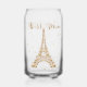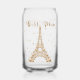 Gold Eiffelturm, goldene Buchstaben auf einem Bett von winzigen goldenen Sternen Geburtstag oder irgendein Anlass. Stil: Druckbehältnis.