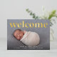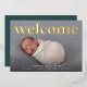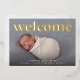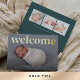 Frische und moderne Geburtsankündigungskarten verfügen über ein vollblutendes, horizontales oder landschaftsorientiertes Foto mit "Begrüßung" oben in Goldfolienschrift. Personalisieren Sie den Namen und die Geburtsdaten des Babys am unteren Ende, und fügen Sie drei zusätzliche Fotos zum Rücken hinzu, zusammen mit einer persönlichen Nachricht.