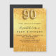 Ein moderner, stilvoller und glamouröser Einladungs-Magnet für eine 90. Geburtstagsparty. Ein Imitat gold metallischer Hintergrund mit Imitat Glitzer Tropfen, Farbe Tropflook. Der Name ist mit einem modernen handgeschriebenen Stilskript geschrieben. Personalisieren Sie Ihre Party-Daten und fügen Sie sie hinzu. Nummer 90 wird mit einem Schriftart im Ballonstil geschrieben, Skript.
