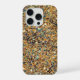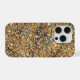 Glamouröse goldene Glitzer-Handy-Gehäuse mit farbenfrohen Glasstücken, die auf schwarzem Hintergrund gesprenkelt sind.