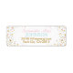 Der goldene Glitzer mit rosa und blauen Zwillingen strahlt Sprinklen auf das Label-Design.