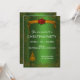 Eine elegante, goldgrüne Weihnachtsweihnachtsbanner mit saisonal roter Poinsettia und einem goldenen Weihnachtsbaum auf grünem Hintergrund, alle gerahmt mit goldenem Glitzer. Auf der Rückseite der Karte befindet sich das rote Poinsettienbrot. (Designerhinweise: Bitte beachten Sie, dass diese Einladung für jedes Weihnachtsthema, das Sie sich wünschen, komplett angepasst werden kann, inklusive Weihnachts-Geburtstagsfeiern, Weihnachtsfeiern und vielem mehr.)