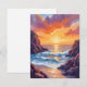 Goldener Horizont | Ozean Gelber Sonnenuntergang Aquarellgemalte Karte