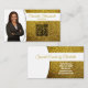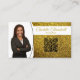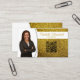 Ein Imitat mit goldgelben Glitzer Set im Hintergrund dieses Visitenkartendesigns, in dem ein Platzhalter für das Foto auf der links Seite mit Vorlagennamen auf der rechten Seite dargestellt ist. Die Rückseite beinhaltet ein abgestimmtes Design und Farben mit Textfeldern für den Firmennamen und Details. Ersetzen Sie das Platzhalter-Foto durch Ihr Foto im vertikalen Format und Ihren QR-Code auf der Vorderseite. Füllen Sie die Vorlagenfelder aus, oder klicken Sie auf Anpassen, um einen Schriftart auszuwählen, der Stil, die Größe und die Farbe, die Ihnen gefällt.Das Foto für Platzhalter ist freundlich pixabay.com.