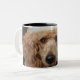 Goldener Pudel-Hund, der ein weißes Clownkostüm Zweifarbige Tasse