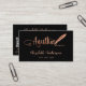 Eine elegante Visitenkarte auf schwarzem Hintergrund und eine goldene Feder in der Rose. Elegantes handgeschriebenes Stilskript. Personalisieren Sie Ihren Namen, Titel, Kontaktdaten und Ihren eigenen QR-Code und fügen Sie ihn Ihrer Website-Adresse hinzu.