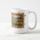 Diese Kaffeemaschine hat einen goldenen Rahmen, der eine Landschaftsmalerei enthält.