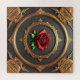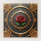 Ein wunderschön gestalteter goldfarbener Rahmen mit einem rote Rose-Zentrum auf einem aufwändig gearbeiteten Hintergrund, der Eleganz und Kunst symbolisiert.