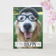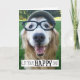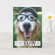 Es ist ein glücklicher Tag! Diese Karte zeigt ein Foto eines lächelnden Golden Retriever Hundes, der einen Hut und eine Brille trägt. Text auf der Vorderseite lautet: "Get Your Happy On!", während in anpassbaren Staaten "Hoffe, dass du einen tollen Tag hast!"