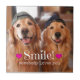 Dieses Ausrüstungsbeschreibungen eine Fotografie von zwei lächelnden golden retrieverhunden, die Baseballmützen tragen. Der Text liest, "lächeln! Jemand Lieben Sie!"