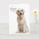 Golden Retriever mit schwarz gerimmter Brille auf weißem Hintergrund zum Geburtstag Spaß. Die Hintergrundfarbe kann geändert werden.