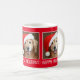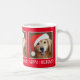 Fügen Sie einen kleinen golden retriever Weihnachtsbeifall Ihrem Feiertag dieses Jahr hinzu! Diese Kaffee-Tasse kennzeichnet eine Fotografie eines lächelnden Hundes des goldenen Retrievers, der trägt eine rote Weihnachtsmannmütze, zusammen mit den Wörtern, "glückliche Feiertage!"