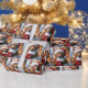 Goldener Retriever mit Weihnachten Strumpf Geschenkpapier