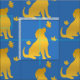 Dieser Entwurf zeigt die Silhouette eines goldenen Retrievers unter dem Blätter des Falles.