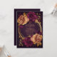 Eine Hochzeitseinladung Hauptfarbe Dunkel Lila mit einem goldenen Ring mit dunklen Lila und braunen Zucker Rose dekoriert.