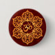 Ein Om oder ein OM entwerfen sitzt nach innen von einer stylised Lotos-Blume. Das Kreismuster wird mit einem goldenen Gelb gefärbt, das hervorgehoben wird, um einen hellen Glanz auf der Oberfläche zu schaffen. Der Hintergrund wird tiefrot gemalt, der durch den negativen Raum der Blume gesehen werden kann. Ein Schatten erscheint gerade unter dem Entwurf, der ihn macht, scheinen, gerade über die Oberfläche des Knopfes zu schwimmen. Dieser stilvolle Entwurf ist eine auffallende Darstellung dieses geistigen Symbols.