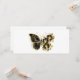 Goldener Schmetterling mit schwarzem Schmuckorchid, mit goldenen Blätter auf weißem Hintergrund dekoriert.