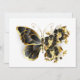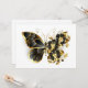 Goldener Schmetterling mit schwarzem Schmuckorchid, mit goldenen Blätter auf weißem Hintergrund dekoriert.