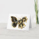 Goldener Schmetterling mit schwarzem Schmuckorchid, mit goldenen Blätter auf weißem Hintergrund dekoriert.