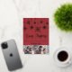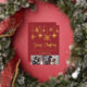 Ein moderner Goldschnee und hängende Schneeflocken in Echtgoldfolie 2 Fotos Familie elegante Weihnachtszeit Grußkarte auf Rot.