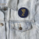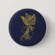 abstrakter lineart Entwurf von goldenem Phoenix auf einem blauen Knopf
