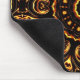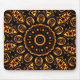 Ein attraktives abstrakt kaleidoskopisches Mandaladesign in Gold, feurigen Kupferrot und Schwarz. Vielleicht erinnert es an eine mit Kuppeln verzierte Decke eines Tempels, einer Kathedrale oder einer Moschee.