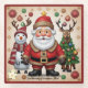 Ein festliches Design mit Schneemann, Weihnachtsmann, Reh und einem dekorierten Weihnachtsbaum, Set vor einem goldenen, gepunkteten blumigen Hintergrund, das Wärme und Urlaubsmagie hervorruft. "Das Originalbild wurde von Meta AI erstellt. AI generierte Kunstwerke. Lizenziert unter CC BY-SA 4.0."