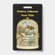 Dieses Abzeichen ist schwarz mit einem goldfarbenen und weißen Vogelkäfig, der eine Winterhütte neben einem Bach und einen Vogel auf einem Zweig im Käfig hat. Passen Sie Ihren Namen und Ihre Informationen mit den Vorlagen an.