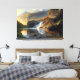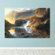 Ein majestätisches Tal, gebadet in goldenem Sonnenlicht, in dem ein Wasserfall in sanften Schleiern über alte Felsen stürzt und sich in kristallklarem Wasser spiegelt. Herbstbäume und schneebedeckte Gipfel vervollständigen diese natürliche Symphonie aus Kraft, Frieden und zeitloser Schönheit.