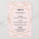 Menü für Hochzeitsessen in geometrischer Rose mit Goldmuster. Perfekte moderne und minimalistische Hochzeit. PERSONALISIEREN SIE DIESE POSITION Hintergrundfarbe kann mit zazzle Hintergrund Farbe Optionen Online-Tool ändern. Für einen zusammenhängenden Blick, besuchen Sie mein Geschäft, um die ganzen Kollektionen unserer geometrischen Rose Goldsammlung zu sehen. Kunstwerk entworfen von Calani May.