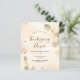 Ein goldener Fall Erntedank Dinner Einladung. Ein goldfarbener Hintergrund mit goldenem Eukalyptusblättern und Imitaten goldener Glitzer Staub. Personalisieren Sie Ihre Party-Daten und fügen Sie sie hinzu.