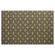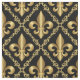 Dieser einzigartige Stoff zeichnet sich durch ein elegantes Muster von goldenen Fleur-de-lis-Symbolen in einem rautenförmigen Gitter von dekorativen Scrollwork aus.