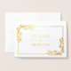 Das elegante, gefaltete Hochzeitsangebot mit einem wunderschönen, goldenen Blumenrahmen aus Imitat im Inneren und einem echten, vergoldeten Rahmen aus Goldfolie mit Braut- und Bräutigamen im Freien lädt Sie ein. Fügen Sie einfach Ihre Veranstaltungsdetails zu dieser einfach zu bedienenden Vorlage hinzu und schmücken Sie diese Karte mit Ihrem bevorzugten Foto, um sie zu einer einmaligen Einladung zu machen.