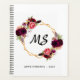 Ein schick weißer Hintergrund. Die Einrichtung besteht aus einem geometrischen Rahmen in den Imitaten mit goldenem Rahmen und bordeauxroten, rosa und goldfarbenen Blume mit Blumenmotiven. Personalisieren und fügen Sie Ihre Monogramm Buchstaben, Initialen und einen Text, Titel. Ideal für Schule, Arbeit oder Organisation Ihres Privat-/Familienlebens.