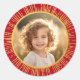 Foto-Aufkleber mit Ihrem Foto in einem goldenen Farbverlauf auf rotem Hintergrund.