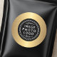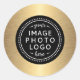 Firmenlogo-Aufkleber mit einem goldenen Farbverlaufsrand (nicht echte Folie) und Logo über einem schwarzen Kreis. Verschieben und verkleinern Sie das Logo mit dem Designwerkzeug.