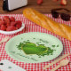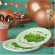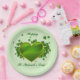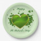 Set von acht 9" hellgrünen Papier Tellern mit einem Bild eines vergoldeten grünen Herzens umgeben von grünen Kleeblättern. Optionaler Text Siehe dazu passende Süßigkeiten, Espressotasse, Kolben, Krug, Schuss Glas, Teekanne und Untersetzer. Sehen Sie sich die gesamte St. Patrick's Day Plate Kollektion im NAHRUNGSMITTEL/BEV an | Abschnitt Geschirr.