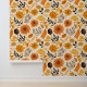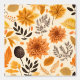 Ein lebhaftes Herbstdesign mit großen, warmen Blumen, umgeben von einer Reihe von delikat illustrierten Blätter. Die goldgelben, verbrannten Orangen und tiefen Brauntöne prägen das Wesen der verblassenden Schönheit des Herbstes. Weiche Farne und Zweige fügen diesem ausgeglichenen Muster Textur hinzu, wobei jedes Element organisch vor einem weichen, neutralen Hintergrund fließt. Das Zusammenspiel von Farben und natürlichen Motiven ruft einen ruhigen, rustikalen Charme hervor.