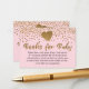 Hier finden Sie einen festlichen Einblick in das beliebte Babyduschbuch Trend. Dieses Design wurde mit Imitaten goldenen Konfetti verziert, und Imitate goldmetallische Header Text und Herzen. Über die bearbeitbare Rosa Hintergrundfarbe habe ich Grafiken hinzugefügt, die den Goldfisch Glitzer und ein goldenes Glitzer-Herz simulieren. // Auf der Vorderseite liest ein kühner Header "Books for Baby" in einem dicken, eleganten Script-Schriftart, den ich als Grafik-Overlay hinzugefügt habe. Eine andere Grafik, die auf der Rückseite angebracht ist, lautet: "Danke, dass du geholfen hast, unsere Babybibliothek zu bauen". Der Text wurde auch in der grafischen Bearbeitung von Glitzer-Gold veredelt. Darunter habe ich Textfelder für die bearbeitbare Nachricht auf jeder Seite hinzugefügt. Sie wurden mit Platzhalter gefüllt, die Sie behalten oder ändern können, um Ihre eigene bevorzugte Formulierung, Schriftart und Farbe. Das Internet ist voll von möglichen Formulierungen, und es gibt viele populäre Gedichte, die den Zweck des Buchantrags darstellen, der teure Karten ersetzt und gleichzeitig dazu beiträgt, das neue Baby auf eine Wertschätzung des Lesens hinzuweisen. Ich entschied mich, ein sonderbares Stück Vers für die Vorderseite zu schreiben und eine freundliche, erklärende Nachricht für den Rücken. Verwenden Sie mein Original oder ersetzen Sie es durch eine der vielen anderen Optionen, die Sie für richtig halten. // 88 // Designed by Melody Watson for Paper Muserie.