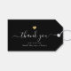 Dieses moderne schicke, bedruckte goldene Herz-Dankeschön-Tag bietet handgeschriebene Skriptkalligraphie neben Ihrem kleinen Firmennamen in eleganter Serifentypografie. Platz für zusätzliche Nachrichten auf der Rückseite. Dies ist die horizontale schwarze Version.