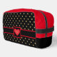 Dieses Design hat ein goldfarbenes Herzmuster, auf der Vorder- und Rückseite. In der Mitte befindet sich eine schwarze Band mit einem roten Herz in der Mitte. Die Oberseite, die Seiten und der Boden sind eine koordinierende solide rot und schwarz.