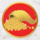 Goldenes Horn von viel Rot und Weiß Konfetti