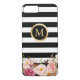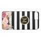 Verzieren Sie Ihr iPhone in der Art mit diesem Schwarz-weißen gestreiften" Kasten des personalisierten "goldenen Kreis-mit Blumenmonogramms!