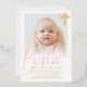 Goldenes Kreuz Pink Script Foto Taufen Foil Folieneinladung